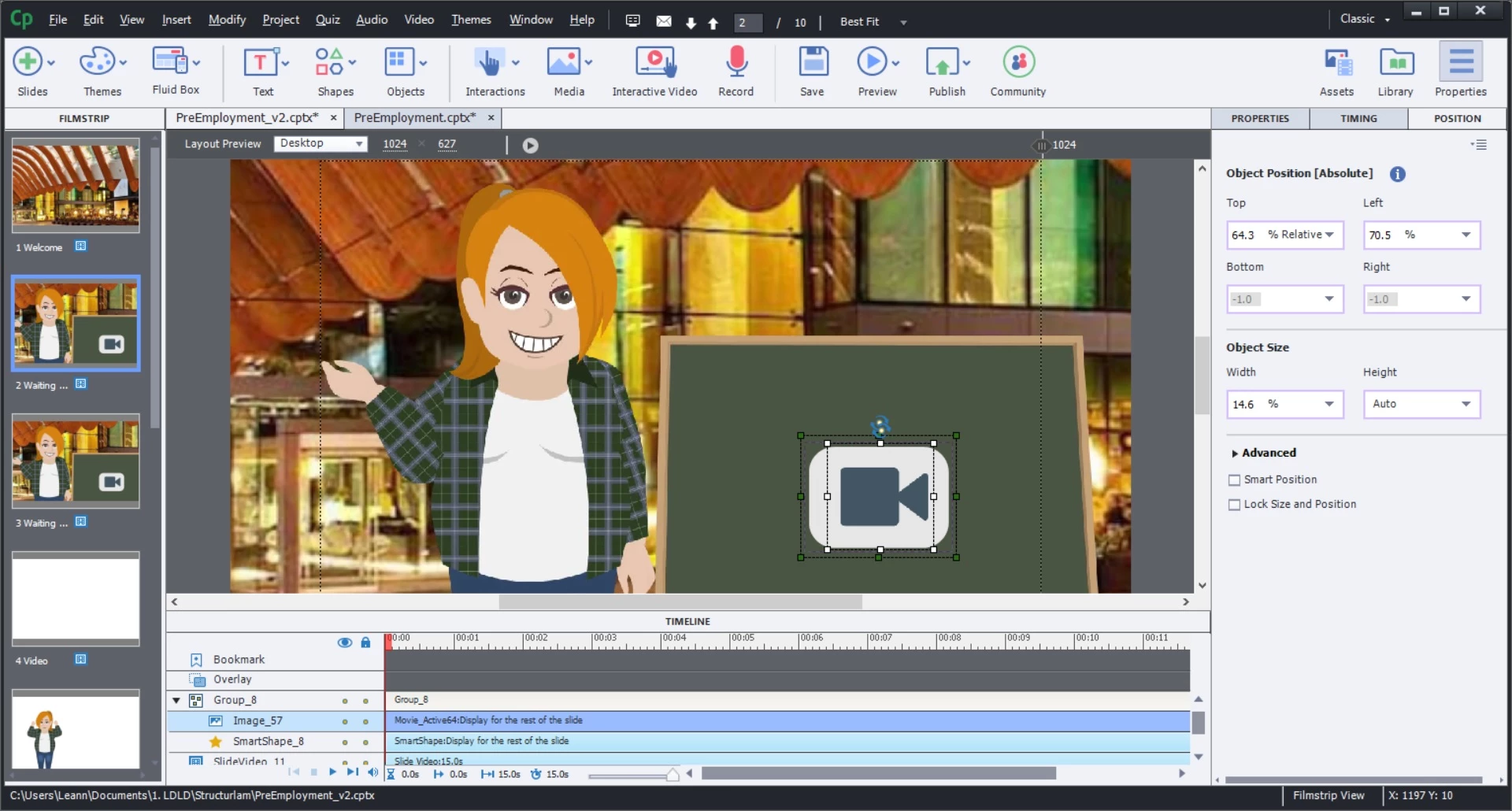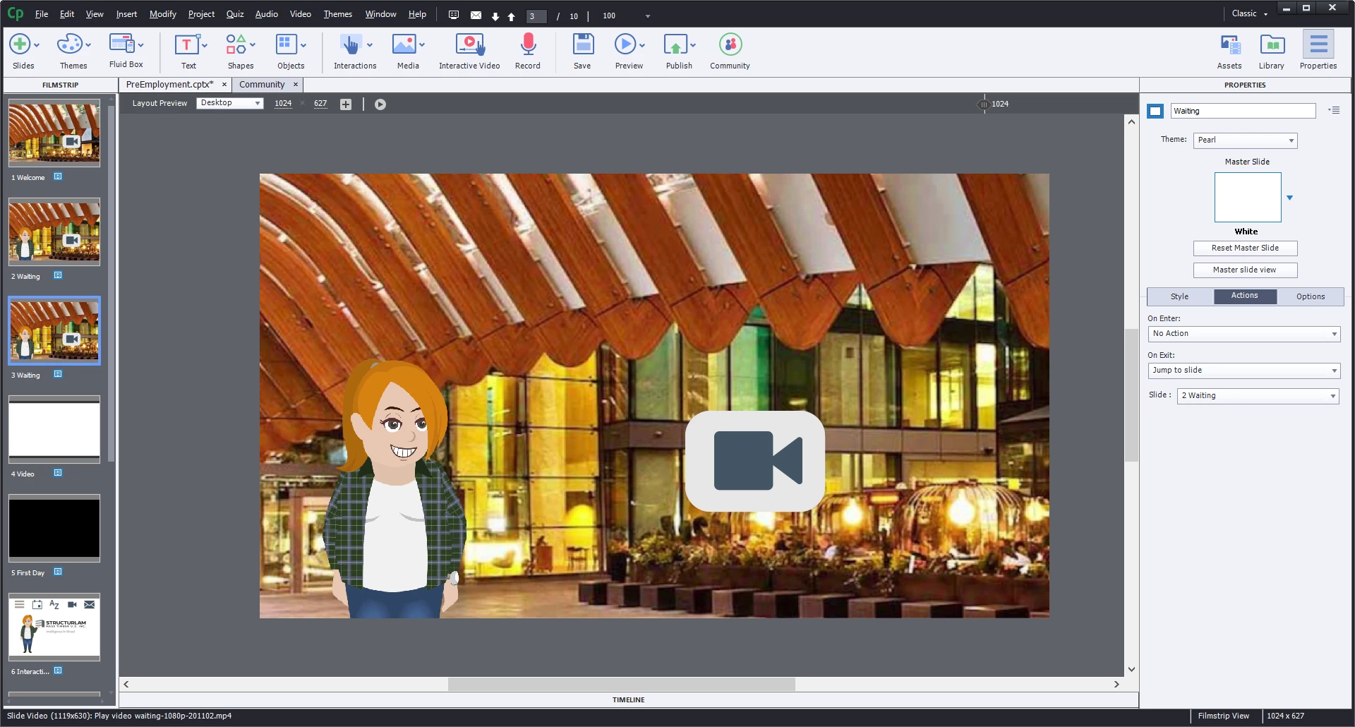 2. I want to loop a slide until the user clicks a button. There is a video playing on the slide. I created 2 slides that are identical and the second slide should loop to the first one on exit. It works for 1 loop but then it just continues to the next slide. Randomly it will work properly (without me changing any settings).