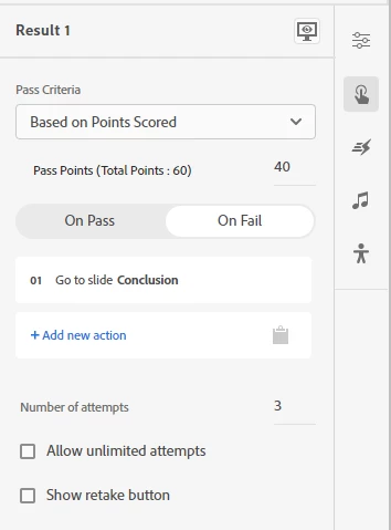 I tried failing the quiz 3 times, and after the 3rd fail, it takes me back to the slide I'm supposed to go to, and the Next button is disabled, so the learner is kinda stuck.