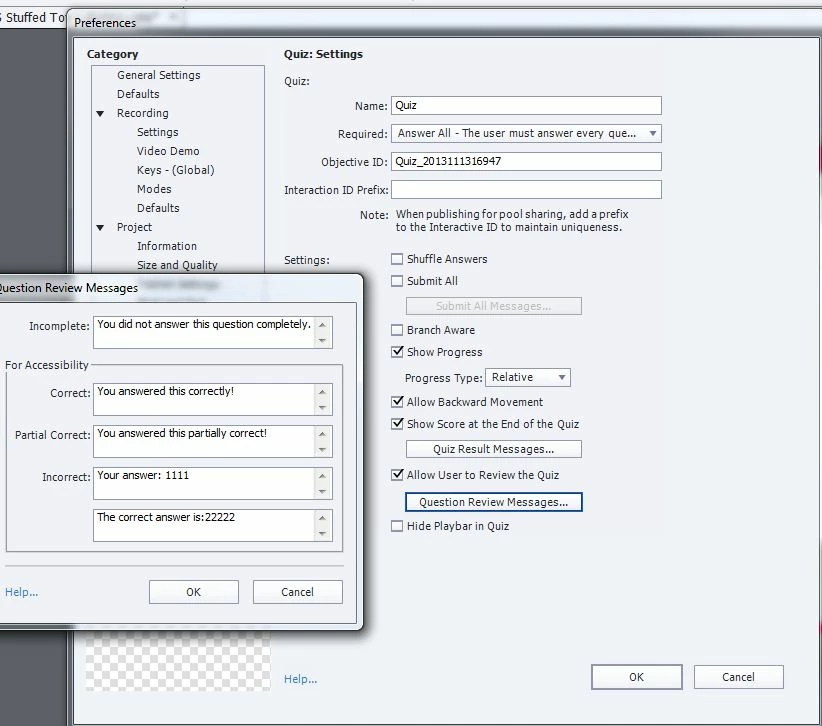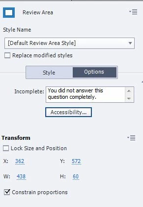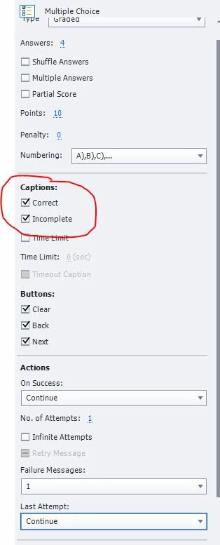 What I would like to do is there is some explanation for the question answer. I have already inserted it at the Correct and incorrect captions. However, when the trainee want to get back to review the questions, they cannot see the correct and incorrect captions again. I suppose the review area can show the the explanation ( should be free text edit) when the trainee review the quiz in the further time.