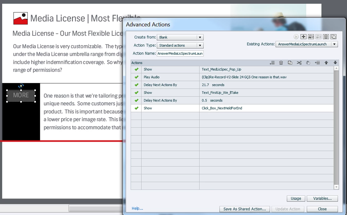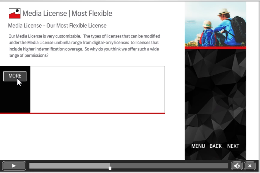 I have a slide that displays a couple of graphics and a MORE button half way through.