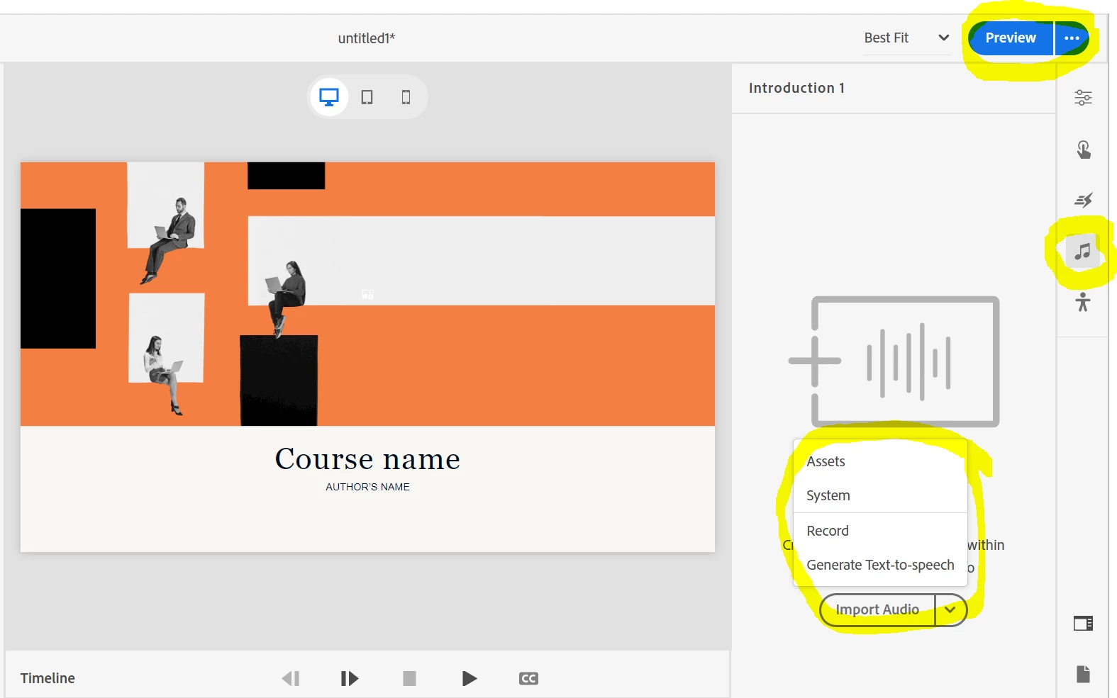 4. Test the auto-play narration by selecting the Preview button on the top-right corner.