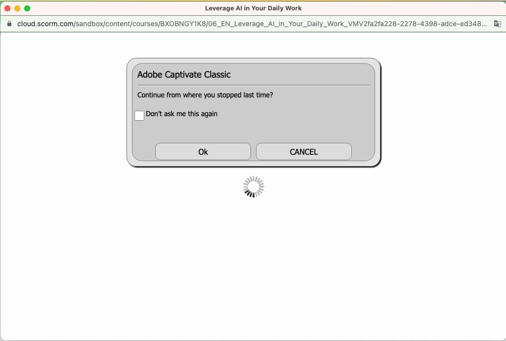 1) But the issue is when I Launch the course again it redirect me directly to the last visited slide. In Adobe captivate Classic version, When we relaunch the course again there is Popup comes and on that "Continue from where you stop last time" Ok and Cancel button was there. But in new Adobe captivate this popup is not comming it is redirecting me directly to the last visited slide.