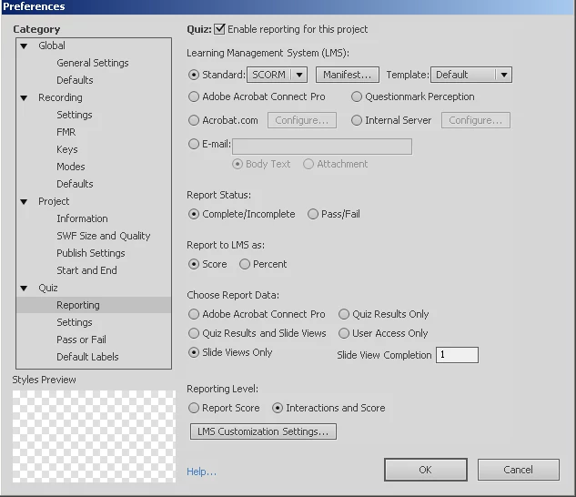 I have a very basic reader course where I want to grant someone credit once they have viewed all slides. I am using SCORM 1.2 and setting either "User Access Only" or "Slide Views Only." If I use slide views, I set it to 1, it sends a 0 score to the LMS, even if the user views all slides. I have been able to create a fix by assigning a point value to a click box or button at the screen where I want the user to get credit. However, this does not seem to be what was intended.