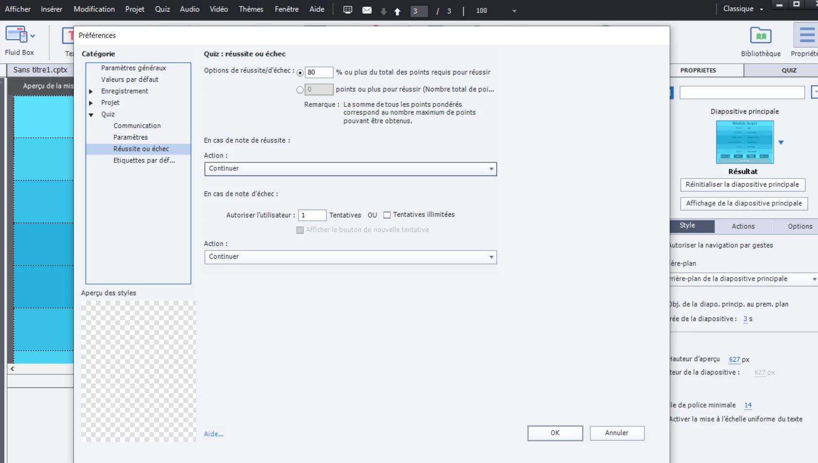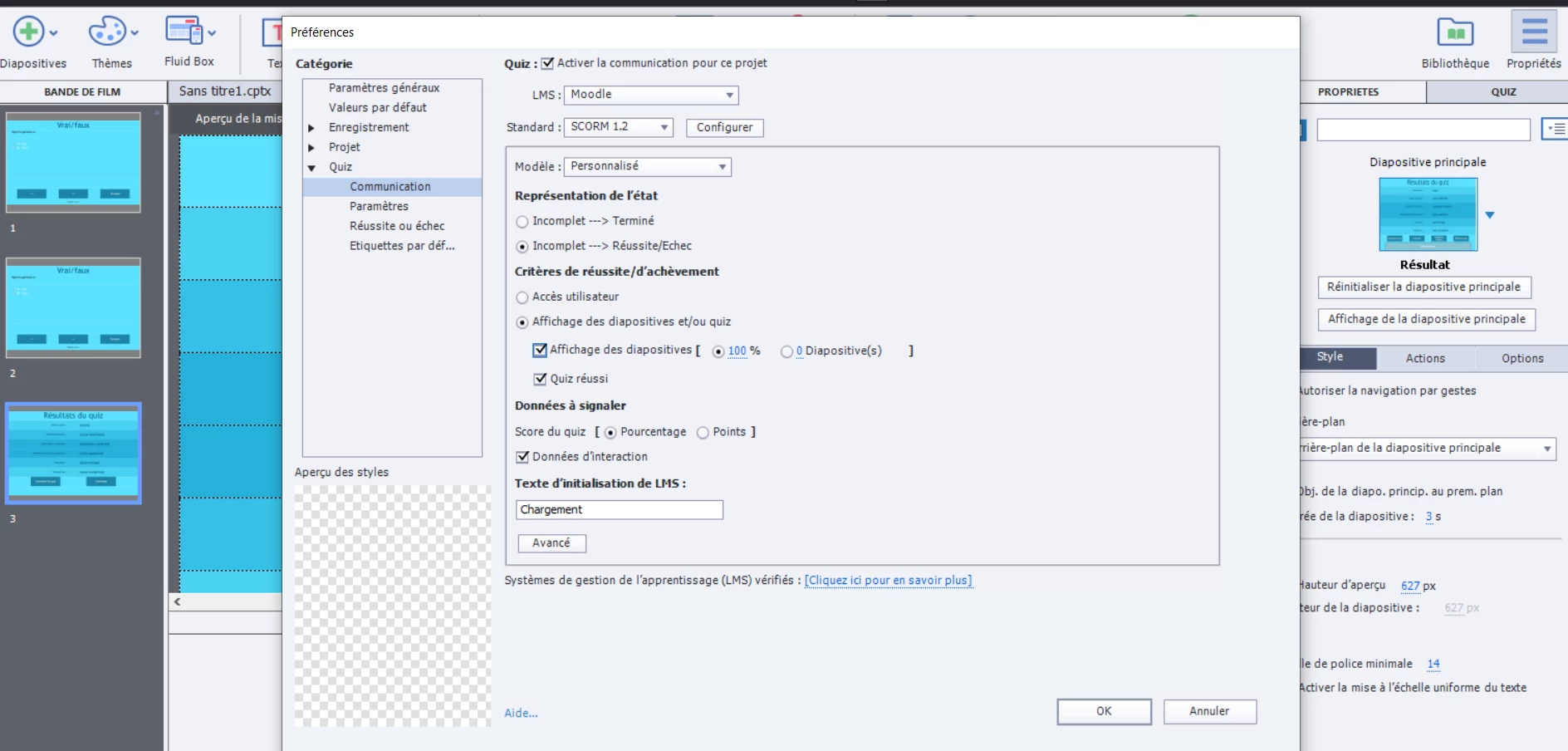 Je travaille sur Captivate pour créer un contenu sur LMS.