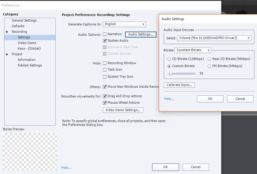 I am running windows 10, Captivate 9. I am trying to screencast my DAW (e.g. Ableton / Cubase etc) with stereo audio.