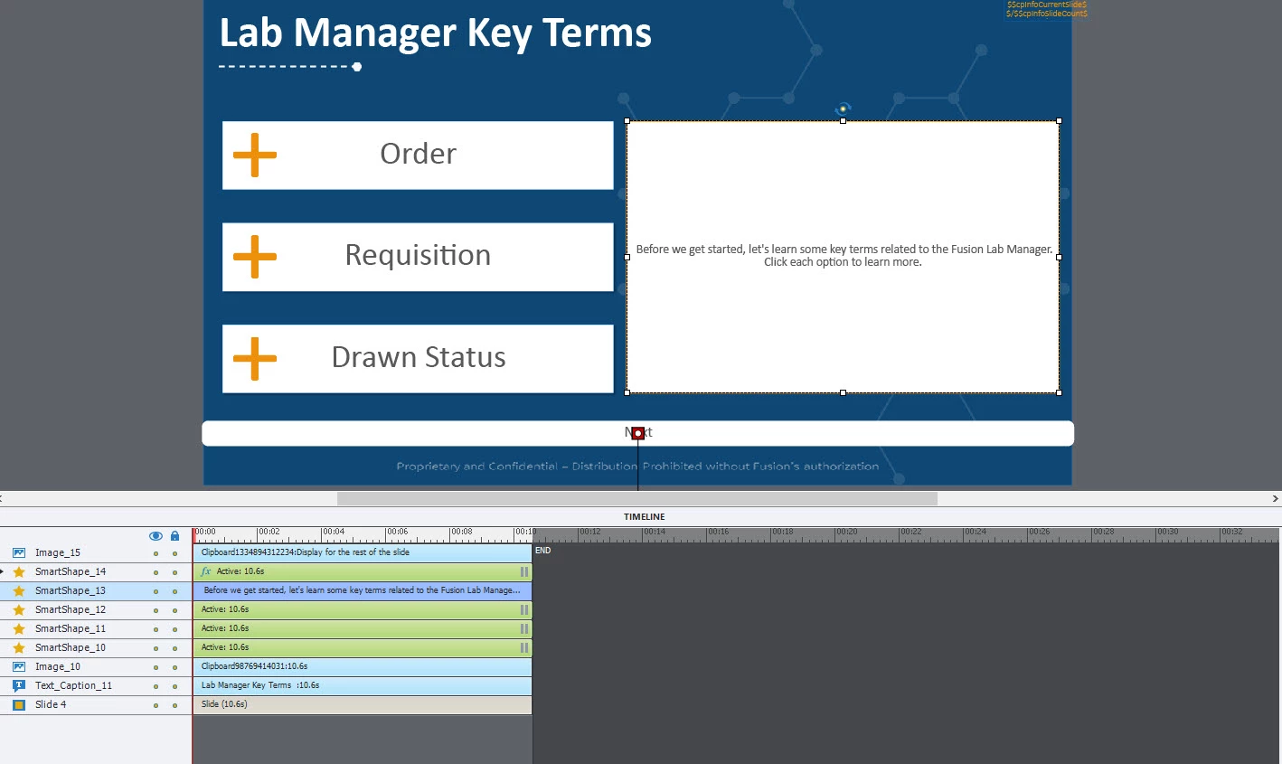 Hello I have three smart shapes that I am using as buttons on a slide. They are all set to pause at the end of the slide. When I upload the SCORM file to our LMS, that slide automatically goes to the next slide once the audio is complete without any of the buttons being clicked. How can I prevent this, it has never happened before.