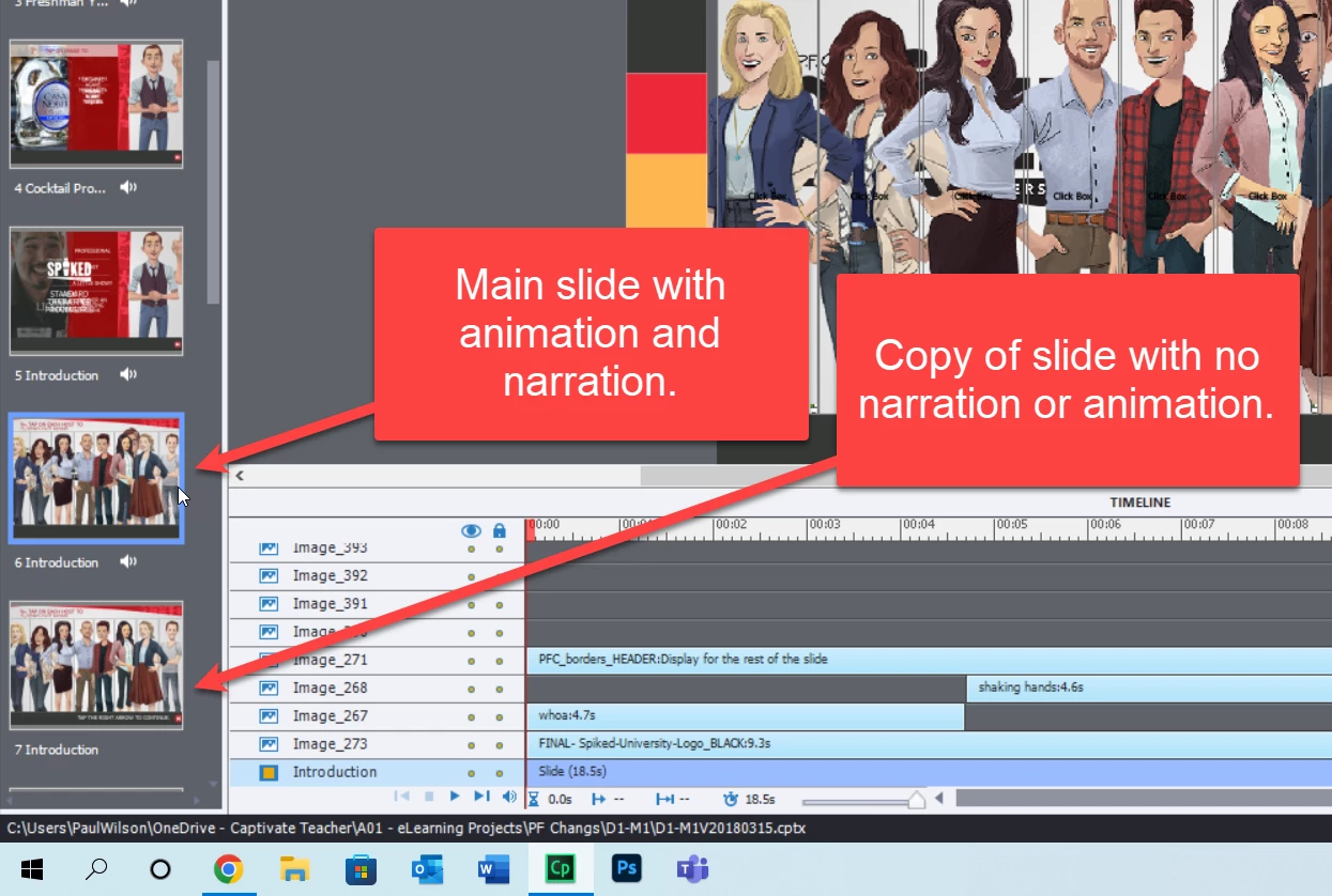 I have a main slide with interactive buttons that take learners to secondary slides to view content and then return to the parent slide. There is initial computer-generated audio on the main slide that the learner hears first time before selecting any interactive button. How do I silence the audio on the main slide after revisiting the main slide after the 1st, 2nd and so forth viewing of secondary slides?