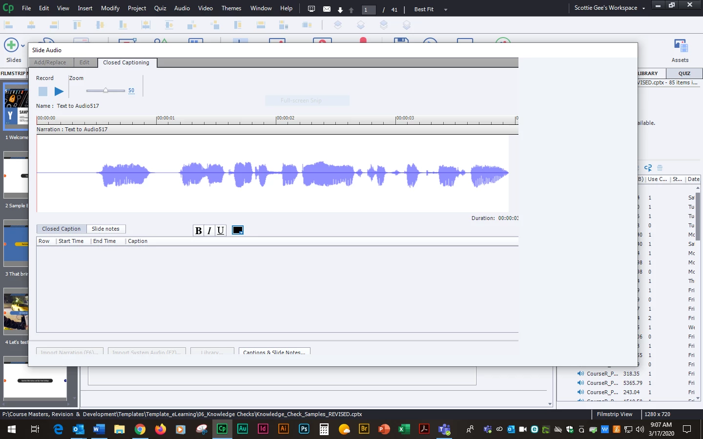 Slide Audio window in Captivate partially populated