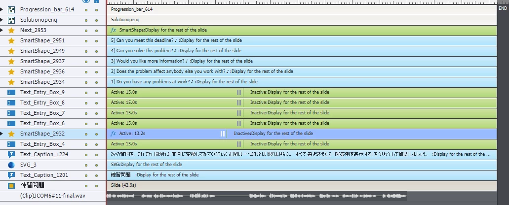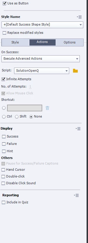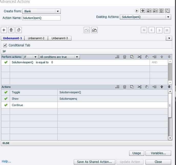 Once a button is clicked it should use an AA to continue the Audio and also display objects. (see image)