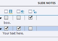 Using CP9 and my client has a PowerPoint that has slide notes which are supplemental material to the main slide informration. I've successfully imported all of the notes to their particular slides. The client wants me to have the notes toggle on/off so people can read the supplemental material. I'm sure there has to be a way, but I'm not sure how. Any advice for a newcomer to Learning development?