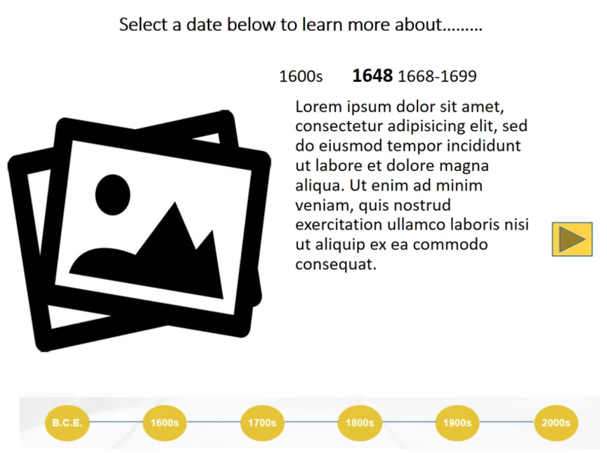 Within a learning module I have a slide designed as a timeline with content elements using advanced actions to show/hide to the relevant content, several buttons and navigation elements. See image below of what should be the slide opening content below. This slide content is very slow - blank screen for about 5/6 secs before content appears. Is there a way to add a content loading icon/image to "alert" learners?