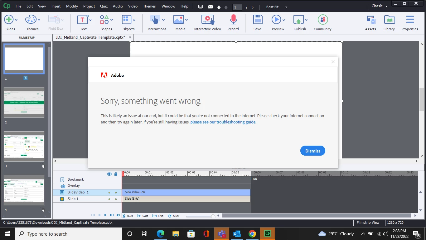 Sorry, something went wrong, you are not connectd 2 the internet error preventing Captivate start up