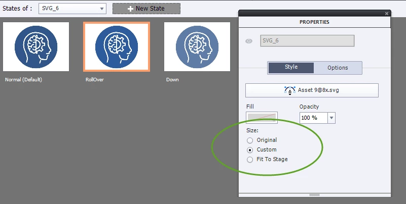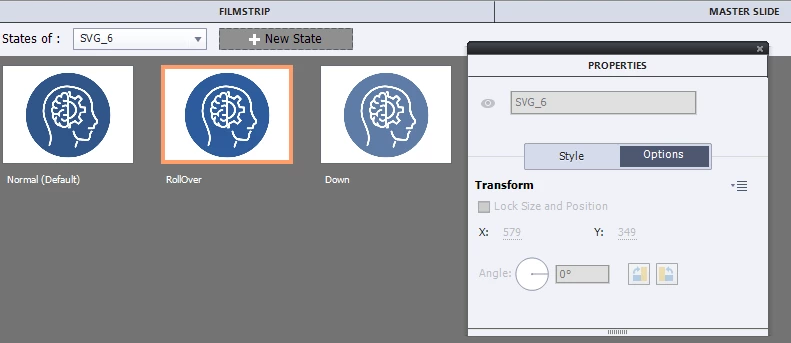 In state view I would like the rollOver state to enlarge, however the everything under Properties/Options/ Transform is grayed/unresponsive, in fact sizes do not even appear as an option if they were active.....