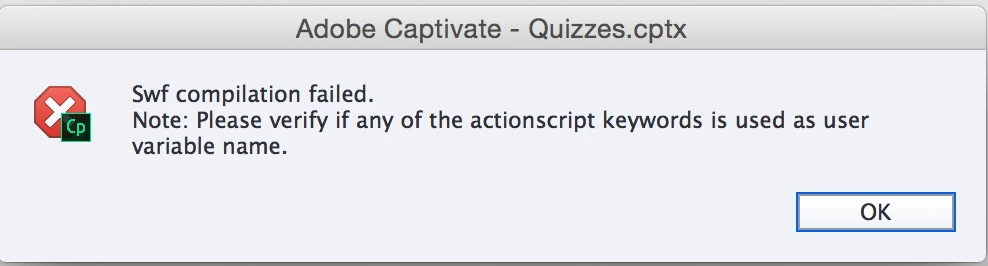 When I preview project in anything other than HTML5 in Browser for a blank project, I receive a .swf compilation error. Please see the image.