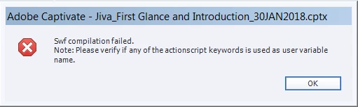 I am using Captivate 2017 and getting the Swf compilation file error message. I am unable to preview or publish my project.