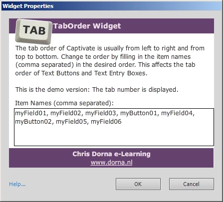 I just finished my TabOrder widget. You can download the demo from my site http://www.dorna.nl/?p=509#more-509