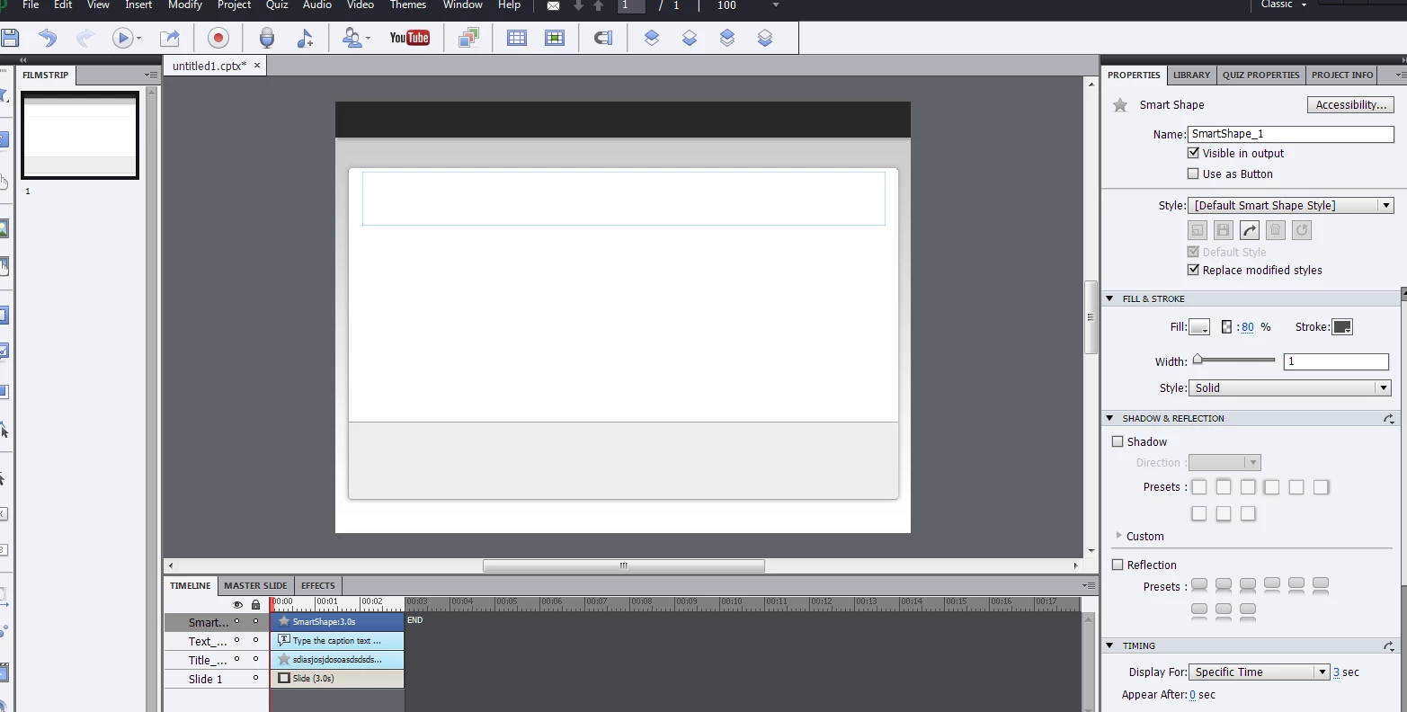 text box, image , animation, video not showing on stage but shown in filmstrip