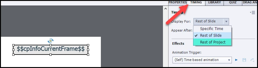 It would be great if I could set its timing to "Rest of Project". But most important is I need step by step instructions to help with the scripting necessary to have the text box display that variable. I am envisioning a scenario where a pause command should freeze the value at the frame where the pause is initiated. When the Timeline is running the text box should display continuously incrementing numbers.