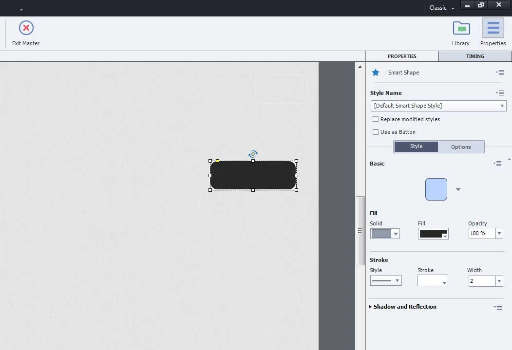 There is no properties in the master slide view in Captivate 9