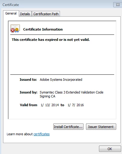 I work for DOD and we are unable to install Adobe Presenter due to the fact that the trusted publisher certificate expired 1/7/2016. I have called a few times to try and explain this, but I keep getting the run around. Without a trusted publisher that is up to date we are unable to continue using the product. Please help a guy out.