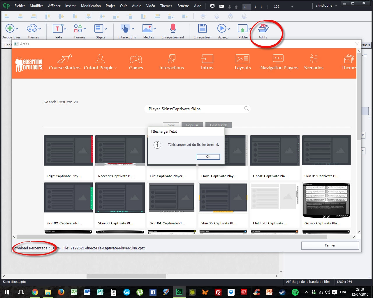 Hello - I'm running the latest update to Cap 9 on a Windows 7 machine. All of the Captivate features I'm currently using are working great except when I attempt to download elearning brother assets. I just get an empty Download Status box and the 'browser' window does not close, causing me to force quit it (end process)!