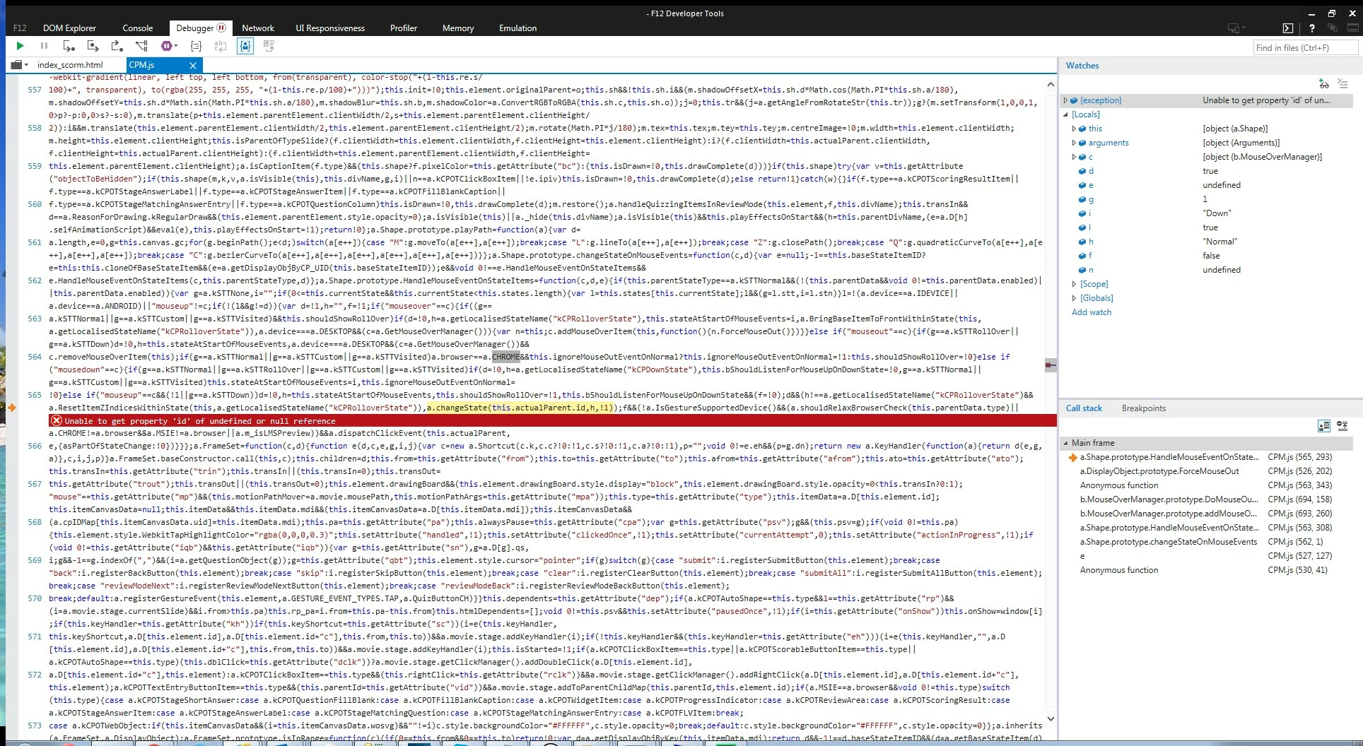 HTML 5 output in captivate 9 generates following Java Script error on Internet Explorer 11 when user navigates between slides within the topic.