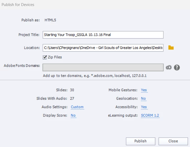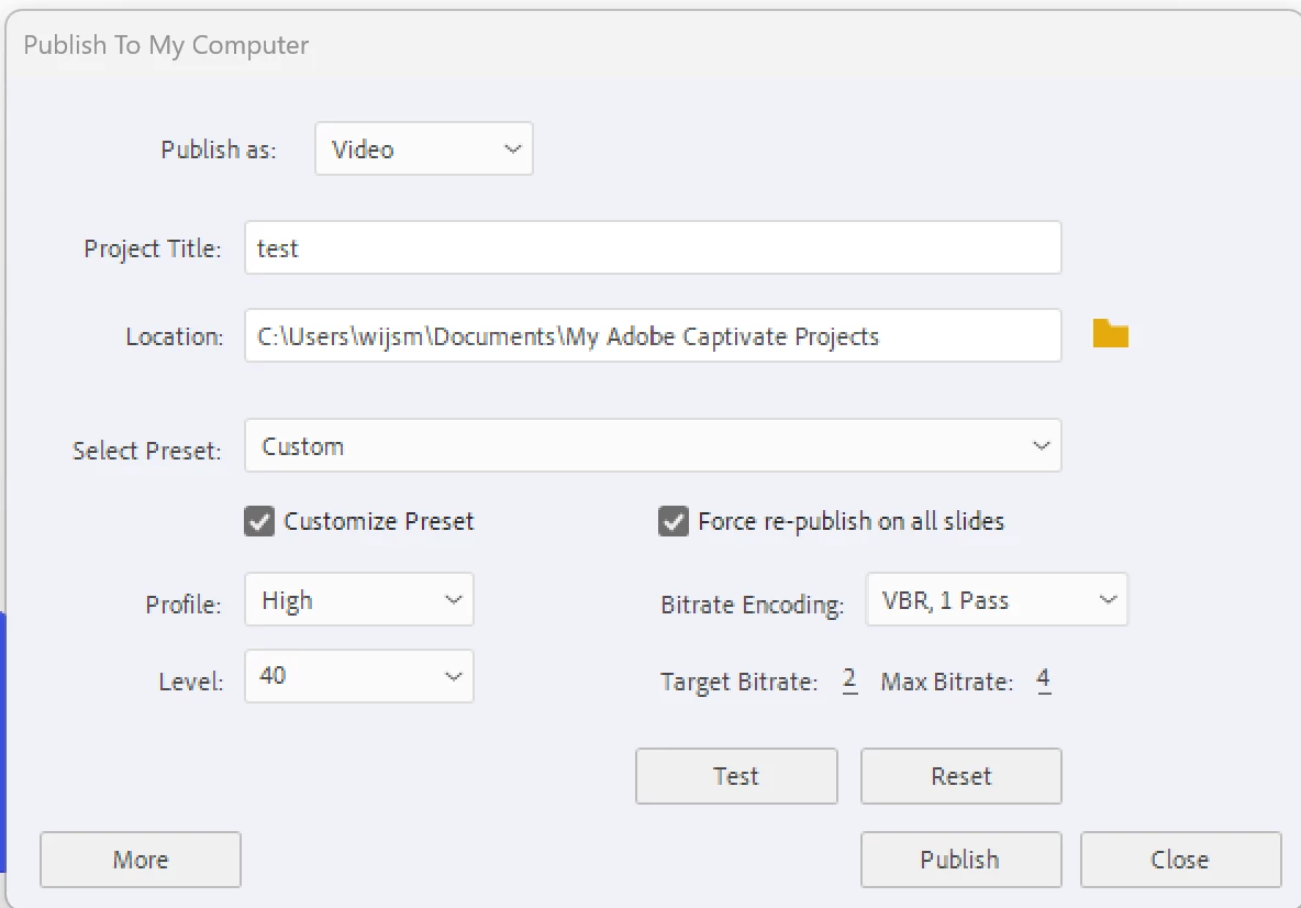 Unable to publish file to video
