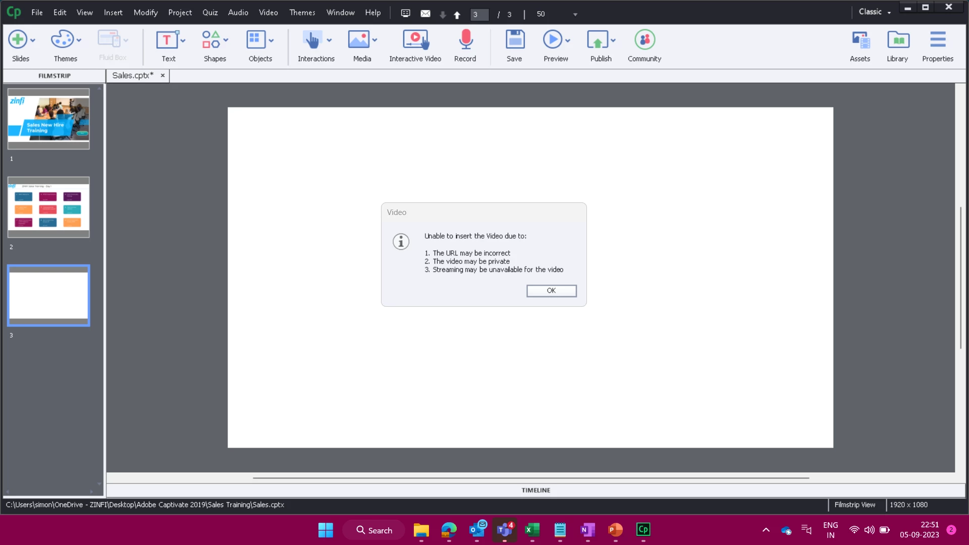 I'm trying to upload Vimeo videos in my Captivate project. I'm getting the following error message. The video privacy is set to "Public". Captivate version - 11.5.5.553