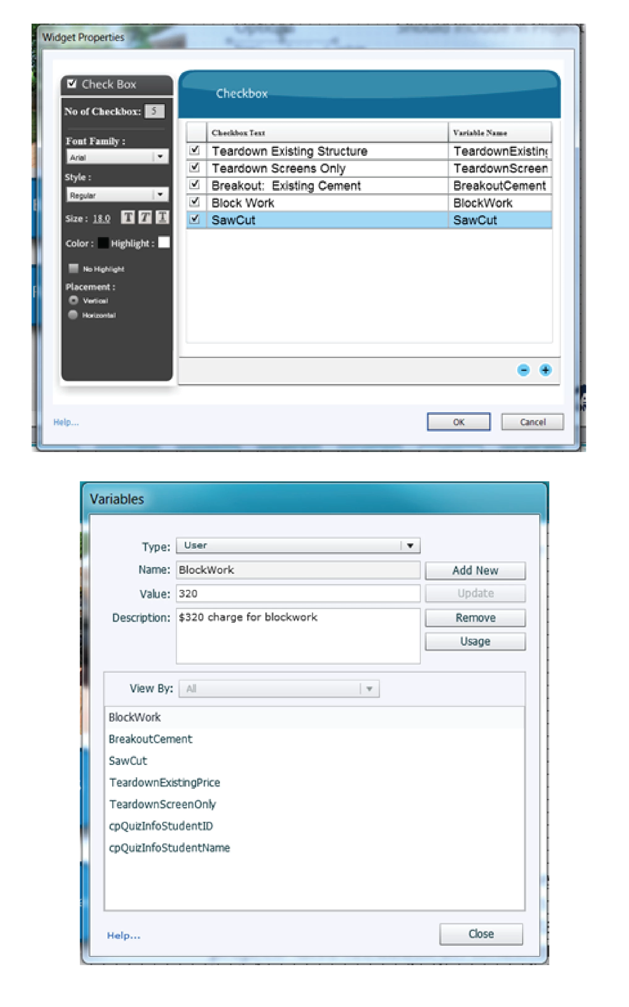 I woud like to be able to use the checkbox widget with variables & advanced actions to create a calculated total.