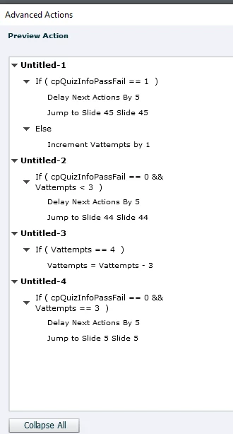 I created some code a few months back which allowed a quiz at the end of the learning to be completed upto 3 times. This has suddenly stopped working. I have not changed anything. I initially thought it was the LMS but it will not work in preview mode either.