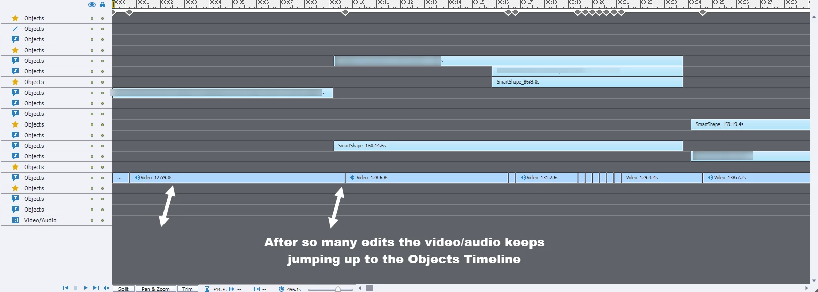After so many edits in a cpvc the video/audio jumps to the objects timeline.