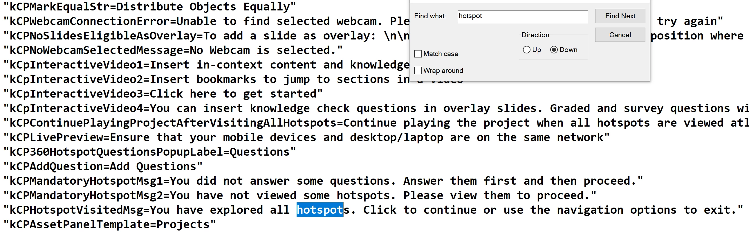 Look in the installation folder for the subfolder corresponding with the language chosen on install. For me that subfolder is labeled 'en_US'. In that folder look for the file 'strings.txt'. I used Notepad to open the file, and searched with the Find functionality for 'hotspot'. You may look for a longer string which corresponds better with the message. I cannot tell you the line exactly: