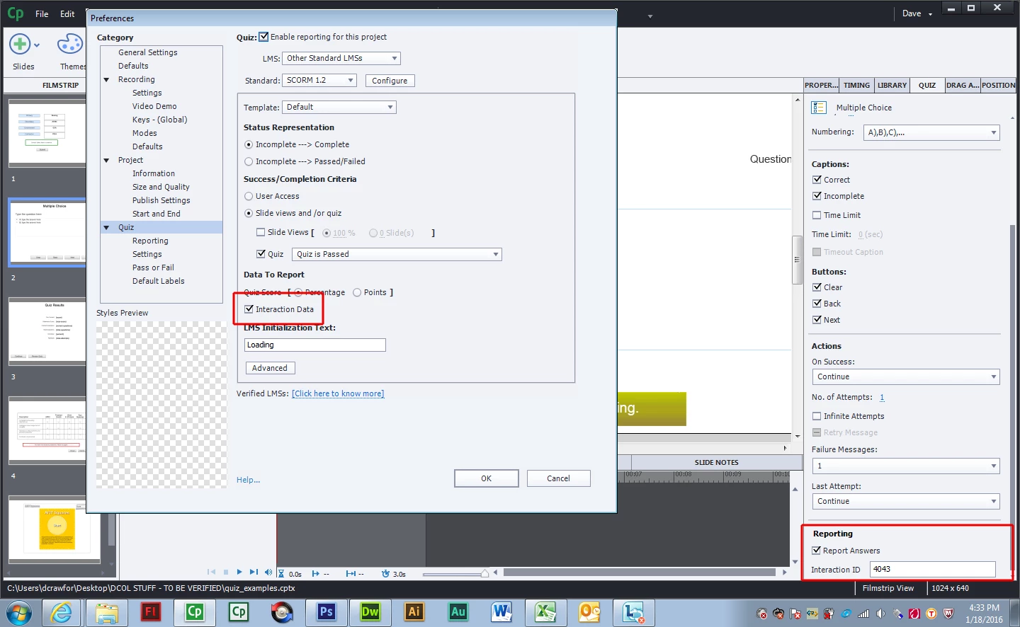 Meanwhile, I've been looking for any information on exactly what data Captivate 8 is reporting to a SCORM compliant LMS. I need to be able to provide reports that list a single user's response to every question. I also need to be able to produce data that would let us examine a specific question to determine what percentage of students answered correct, incorrectly, and how many selected each possible answer (in the case of a M/C question).