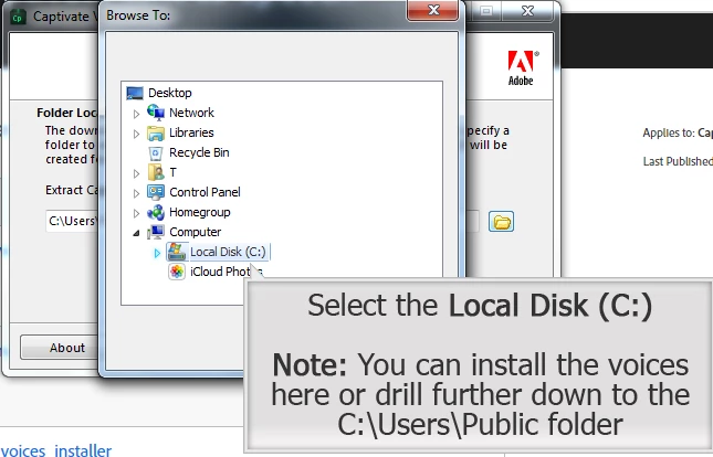 What is the path to use when I install the voices for Captivate 2019? In other words, where should I create a folder for the voices when I un-zip the file I downloaded?