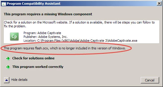 The problem is that our new PCs have Windows 7, and Captivate 3 gives error messages related to Flash Player, including these: