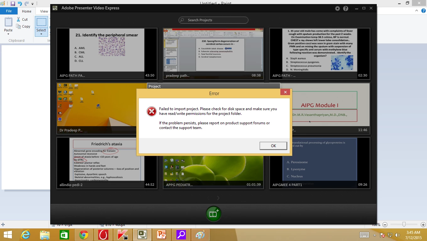 When i am trying to import a Video project , it says " Failed to import project . Please check for disk space and make sure you read/write permissions for the project folder