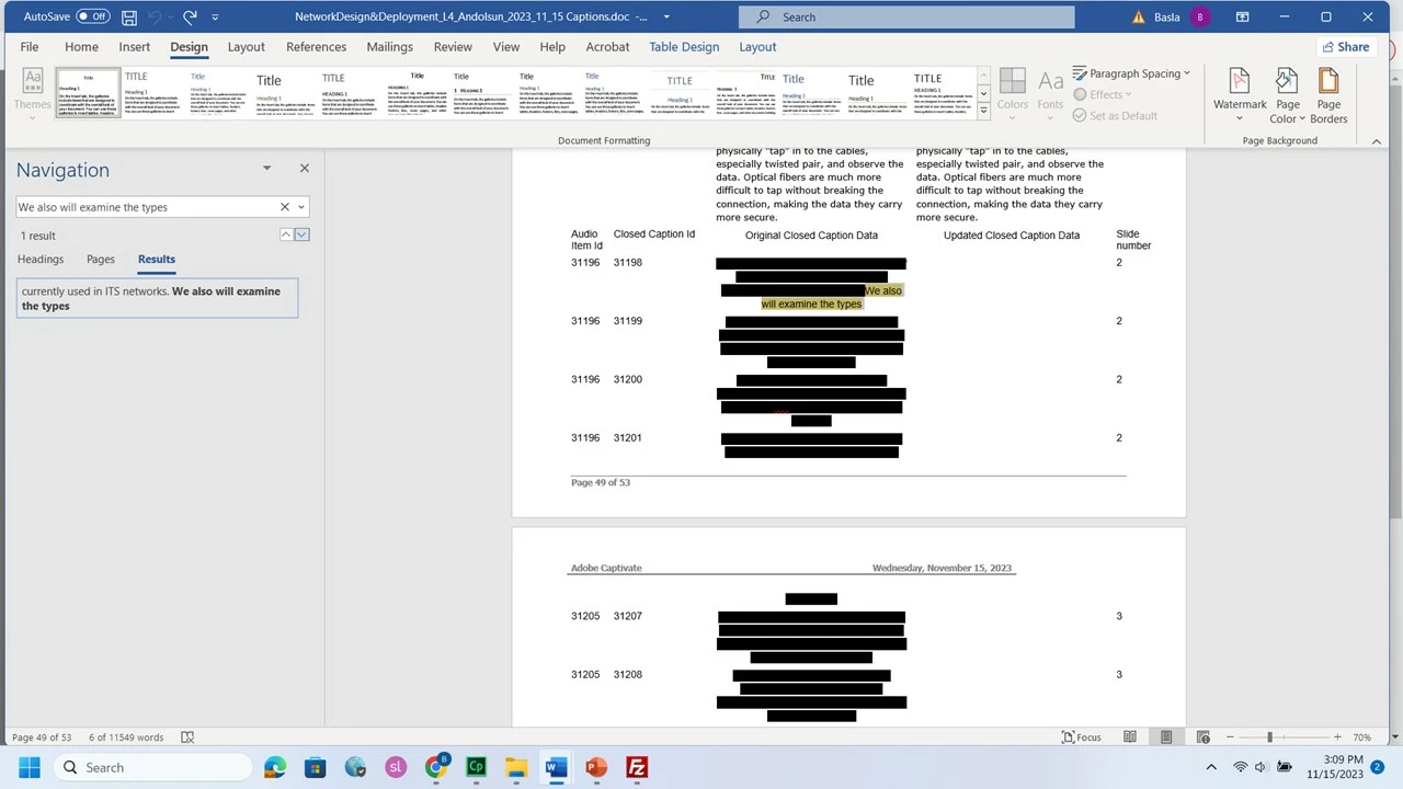 Hi all! I want to export the closed captions in each of our project so we have a written record of what they all say (we no longer have the scripts). When I export them, the closed captions show up as black bars. If you search the document for key words they will show up, so apparently the closed captioning text is hidden within the black bars. I have tried changing the color of the Word document, but that didn't help. Any other recommendations?
