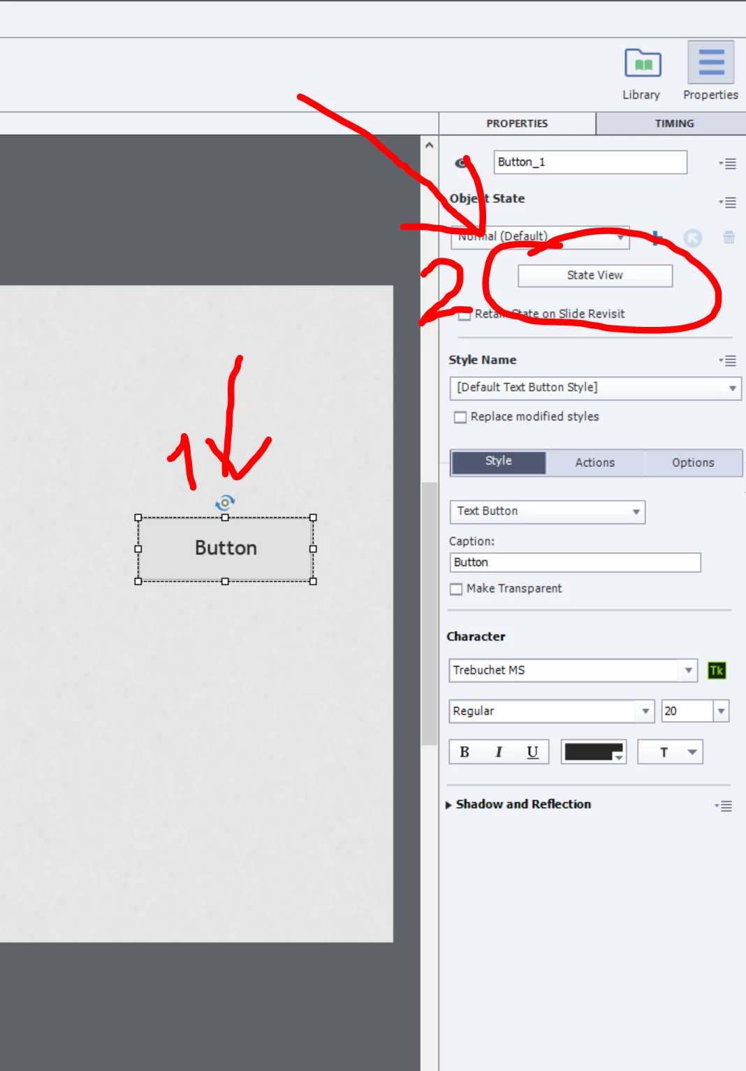I'm working with Captivate for the first time and am watching the video on multi state objects. How do I enable state view?