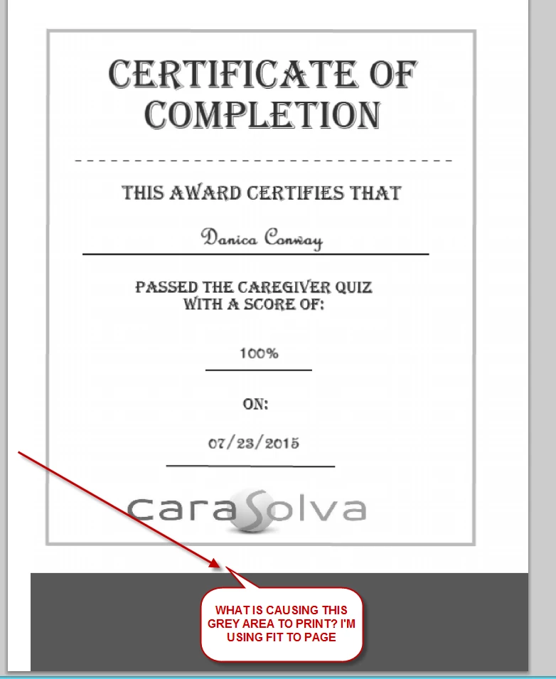 What's the point of having this eLearning program if you can't even print a certificate properly?