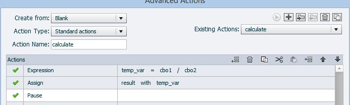And the advanced action screen looks like this: