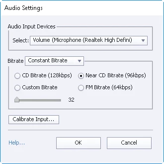 It is set as default in the preferences with good sound level. It will record to Audition CC: Preferences WAV, 16 bit, Stereo, 41KHz, volume level set on computer correctly on computer. But it won't even test calibrate in Captivate CC 2015,