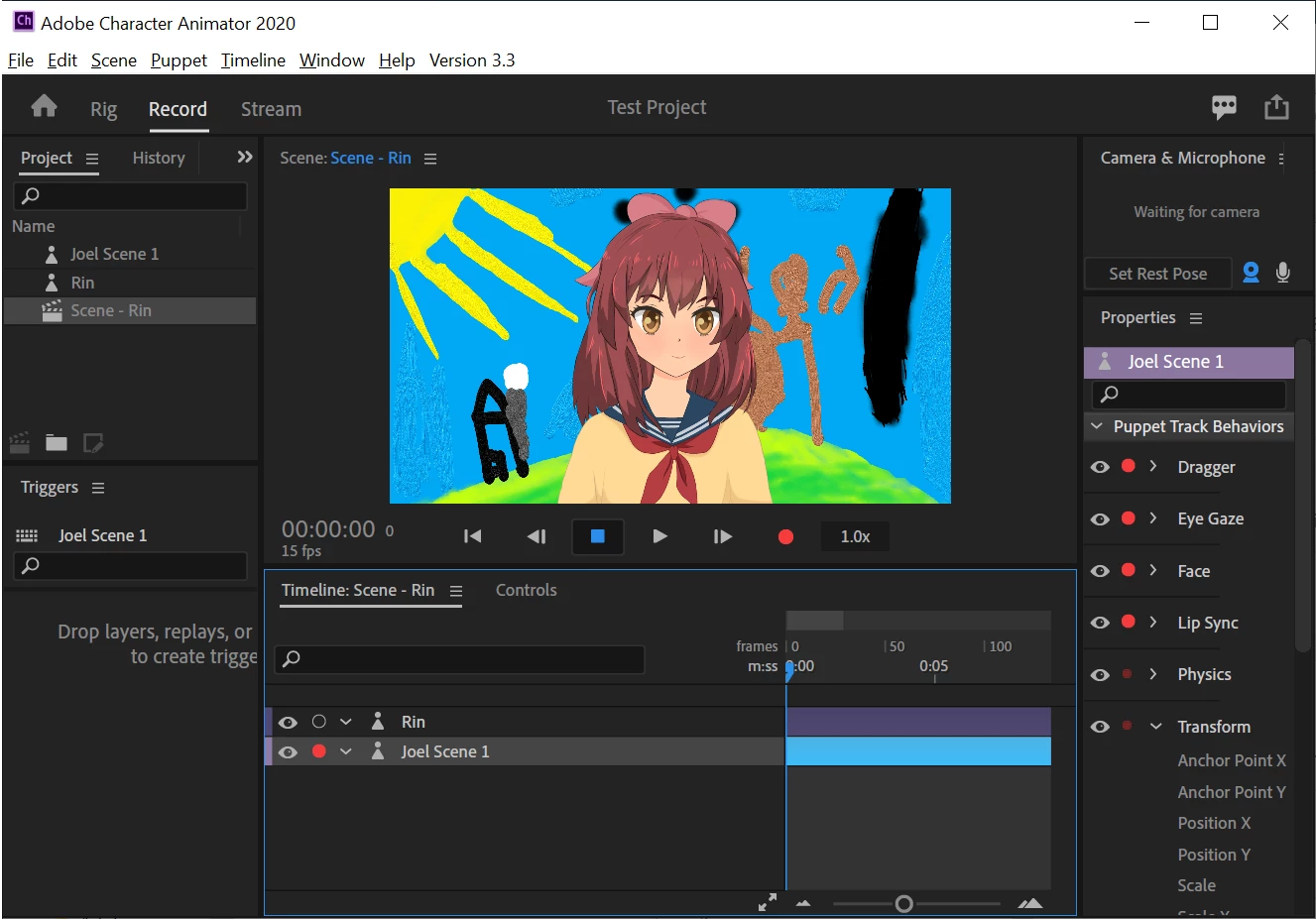 After you let go, the Joel Scene 1 puppet will appear behind the Rin puppet.