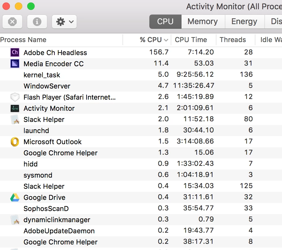 I'm loving playing around with Character Animator! However, it puts a huge strain on my CPU. The image below is actually after I'd closed CA and the video was rendering, but it's also at least that high while the program is running as well. I'm on a MacBook Pro with 16G of ram and I've never seen anything like this. I can only use the program for a short amount of time before it slows my computer down so much that I have to close out of it. Is anybody else experiencing this? Does anyone have a solution for this? Thanks!