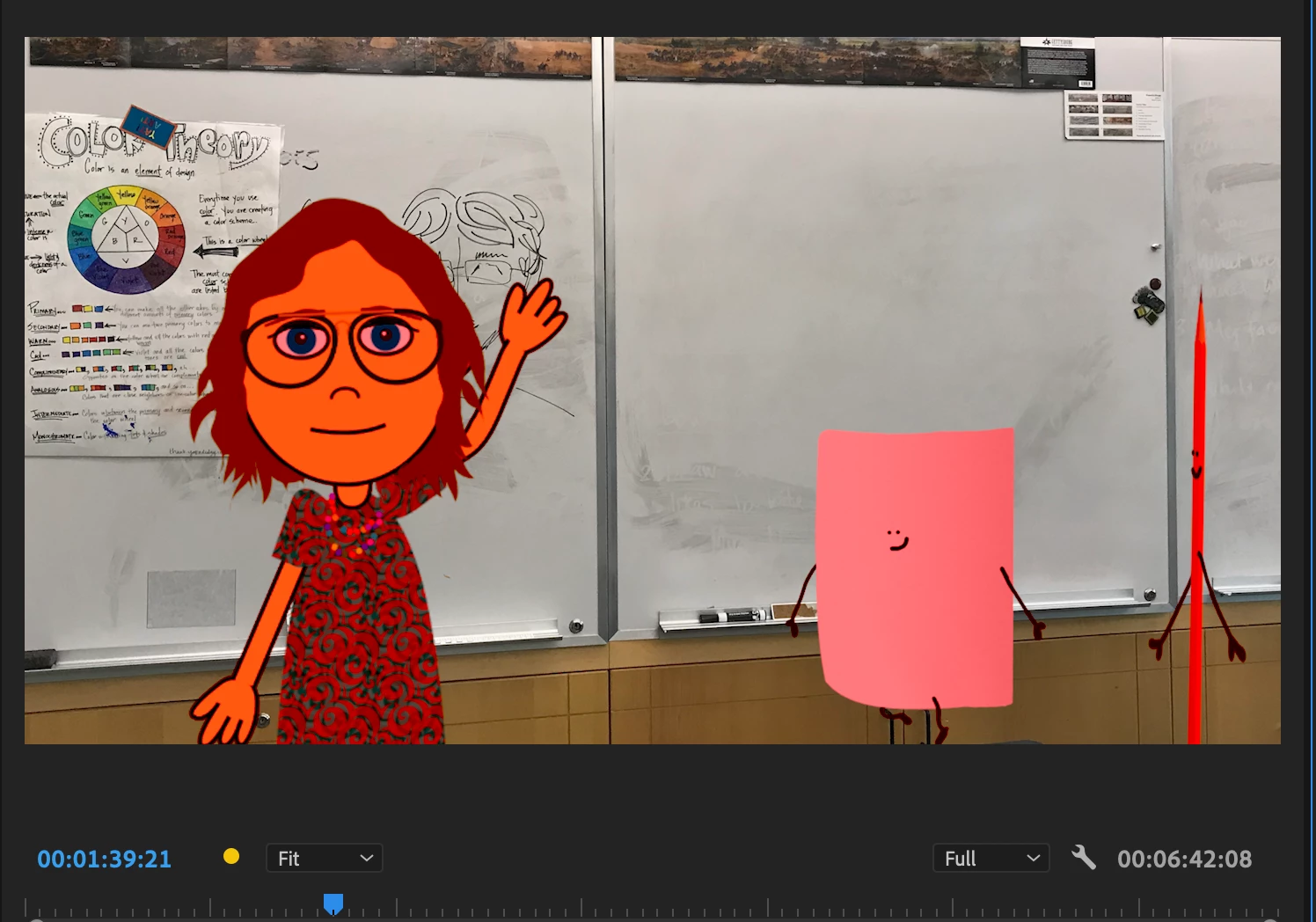 I just logged on to my Premiere Pro video to make some edits, and my Adobe Character is showing up red along with the some of the backgrouds (that were brought in from Ch. I can't find anything about this...help please!