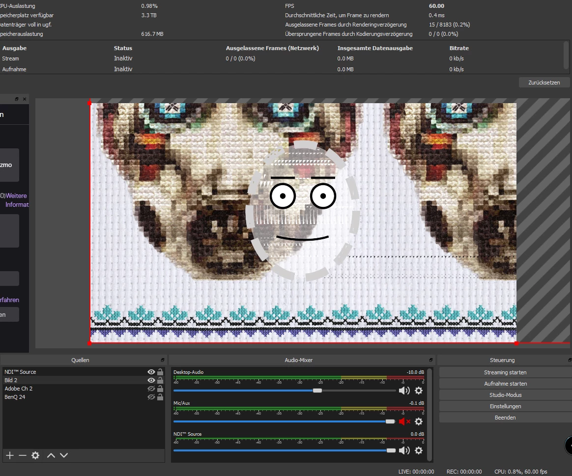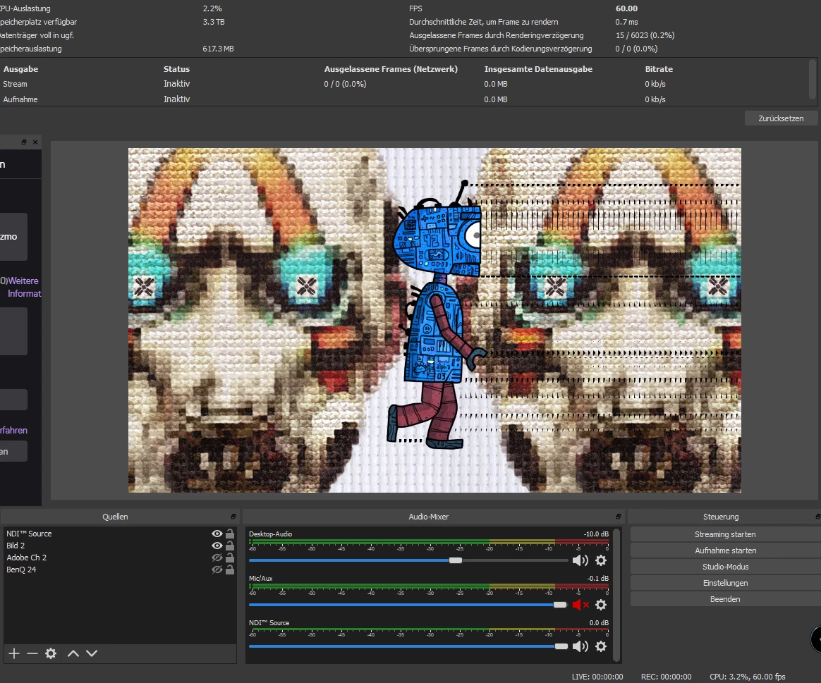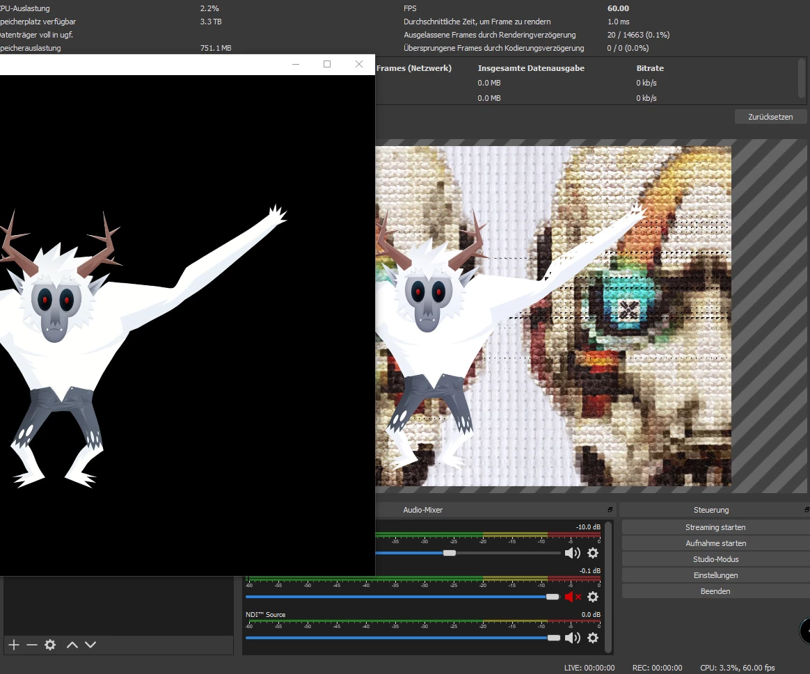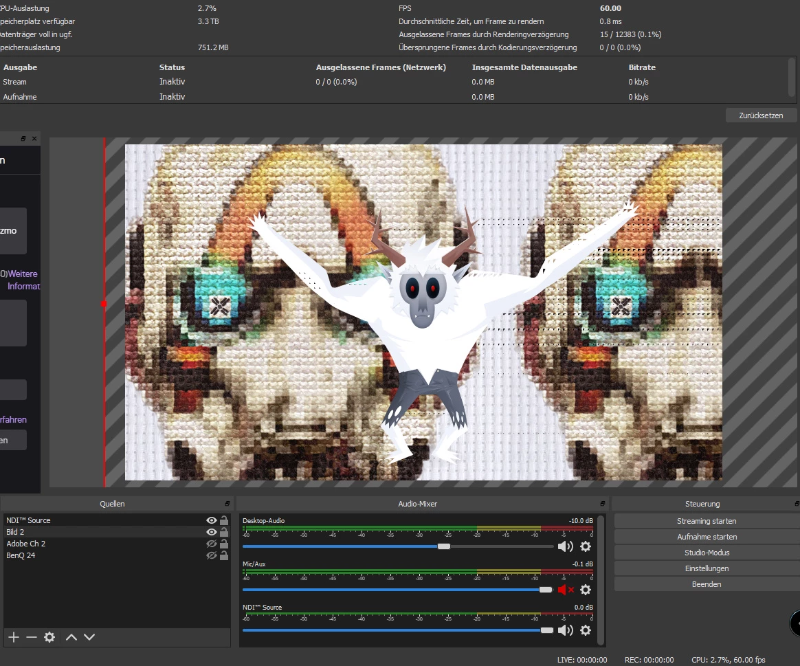Adobe Charakter Animator / NDI / OBS "strage Triangle pixel problems in OBS"