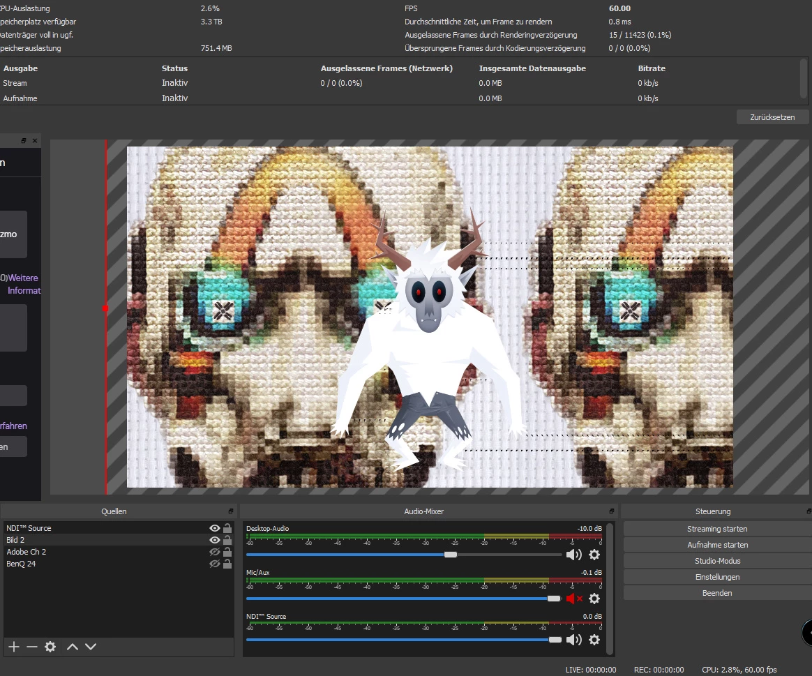 I sending a adobe charakter animator puppet via NDI to OBS.