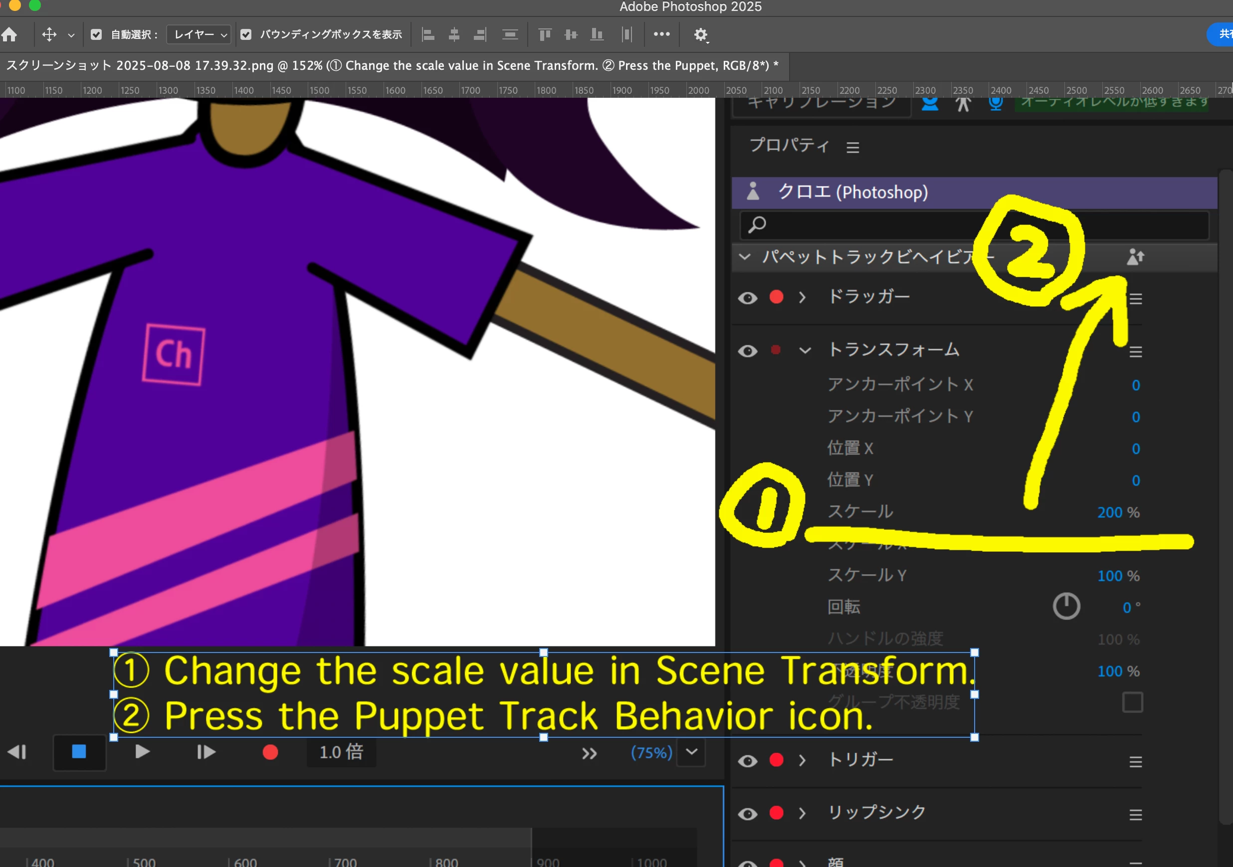 I have rigged a nice large puppet in pro-mode (with all sorts of triggers and replays ready for use in starter-mode). I was thinking, that the character could just be rescaled in starter-mode.