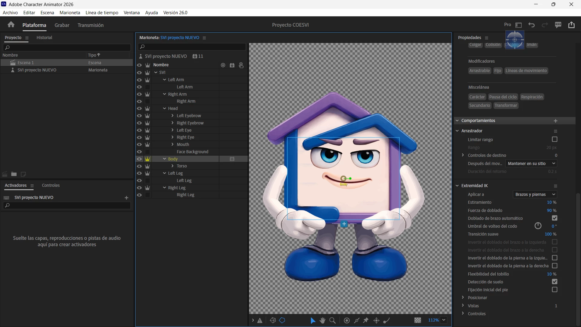 AYUDA! Tengo mi marioneta, funciona bien los ojos, las cejas, la boca cada vez que hablo, pero no logro que los brazos y piernas sigan al cuerpo