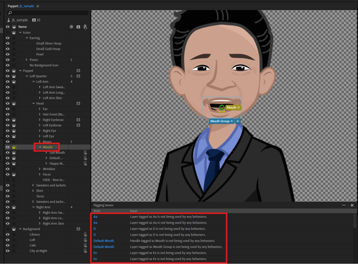 Hello 🙂 Through Adobe Character Animator We have created a Puppet. But as you can see in the red box part of the attached picture It says that 'behavior' in the 'mouth' group is not currently in use. Please let me know how I can solve this problem.