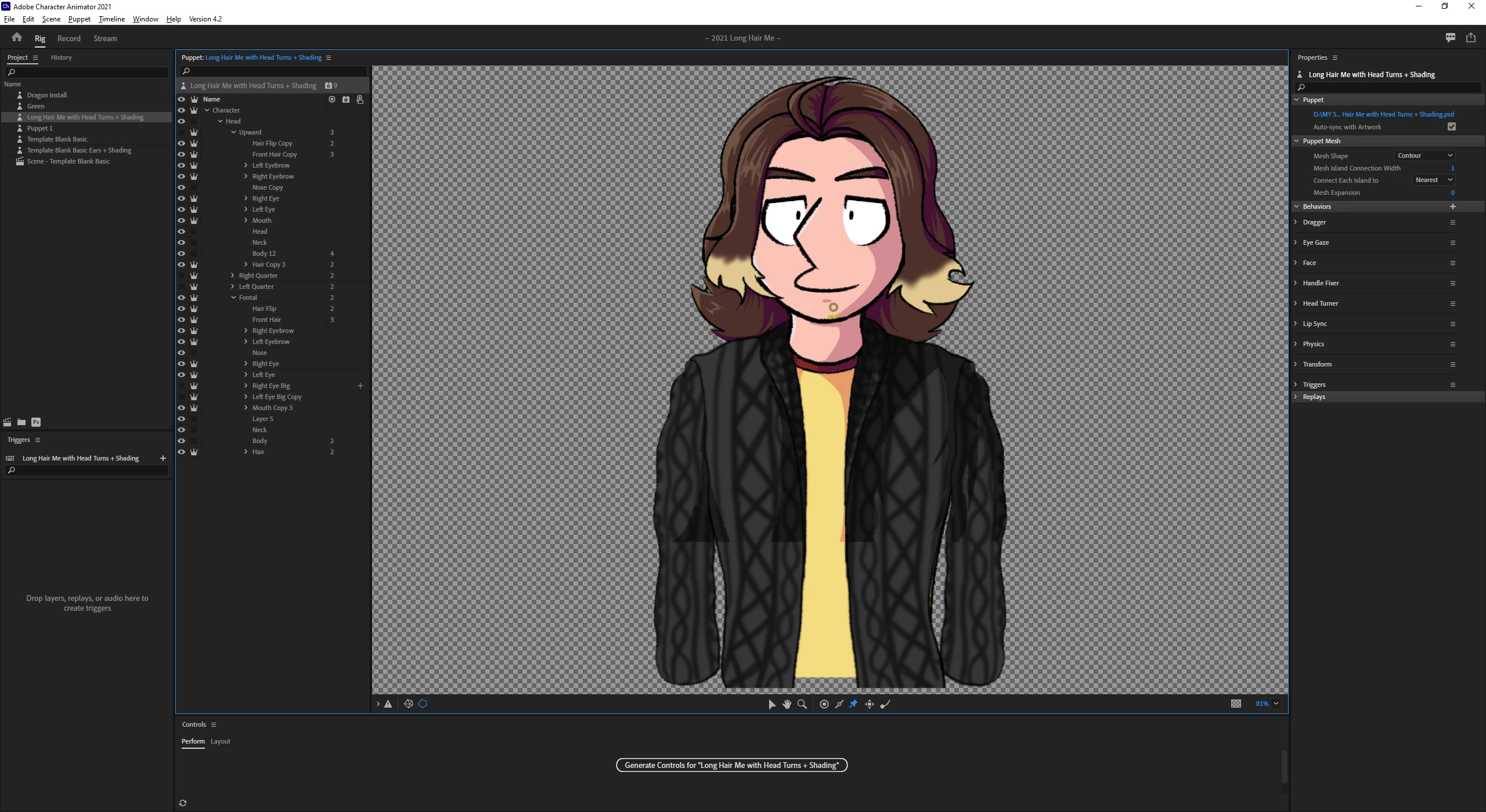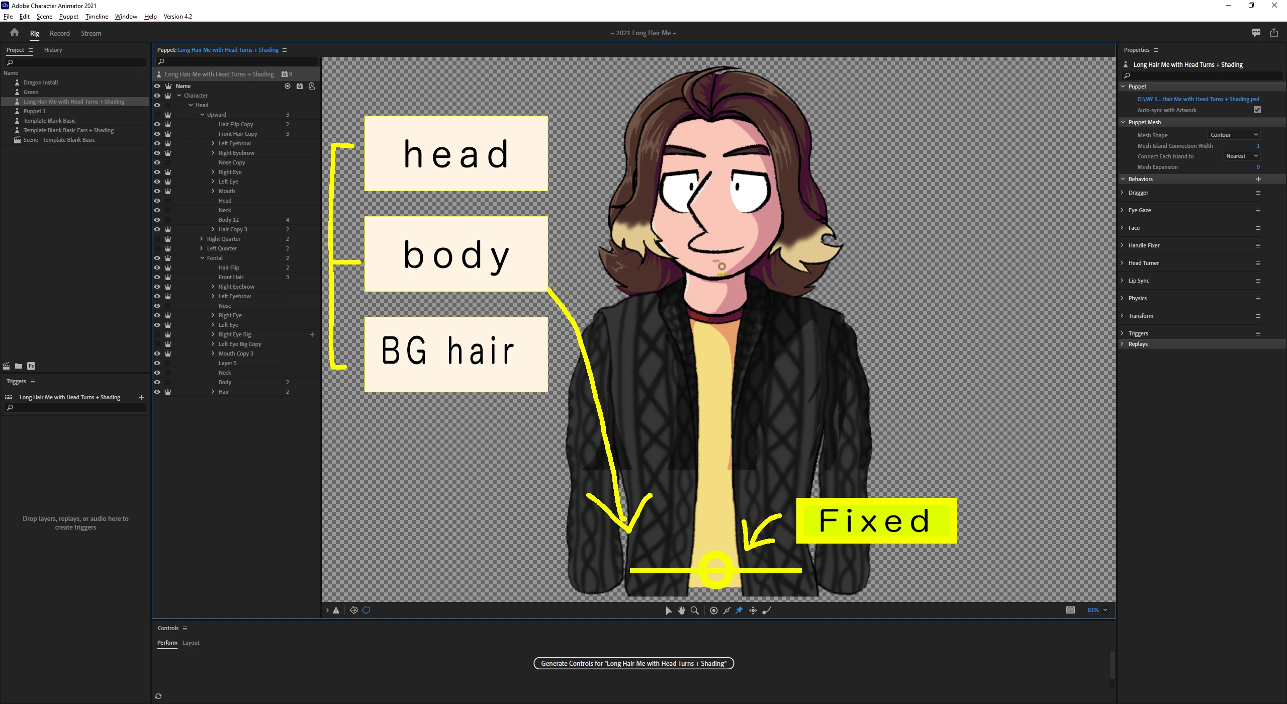 Recently started adding head turns to a character I use to represent myself for streams, but can't get the body to stay pinned since I added them. The longer hair means I had to layer things a bit differently than I usually do so that the hair would move over the body as it turned and now for the life of me I can't seem to figure out how to pin the body. Any help would be appreciated!